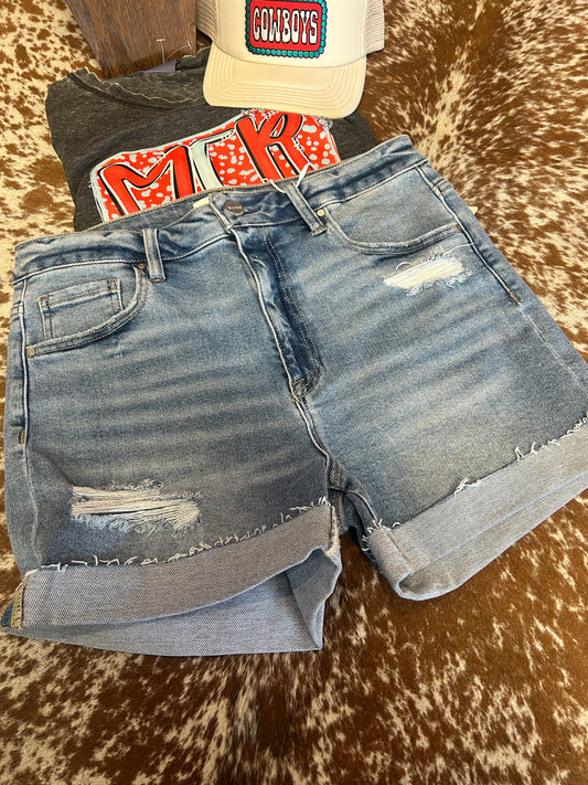Risen Tummy Control Medium Wash Light Distressed Flare