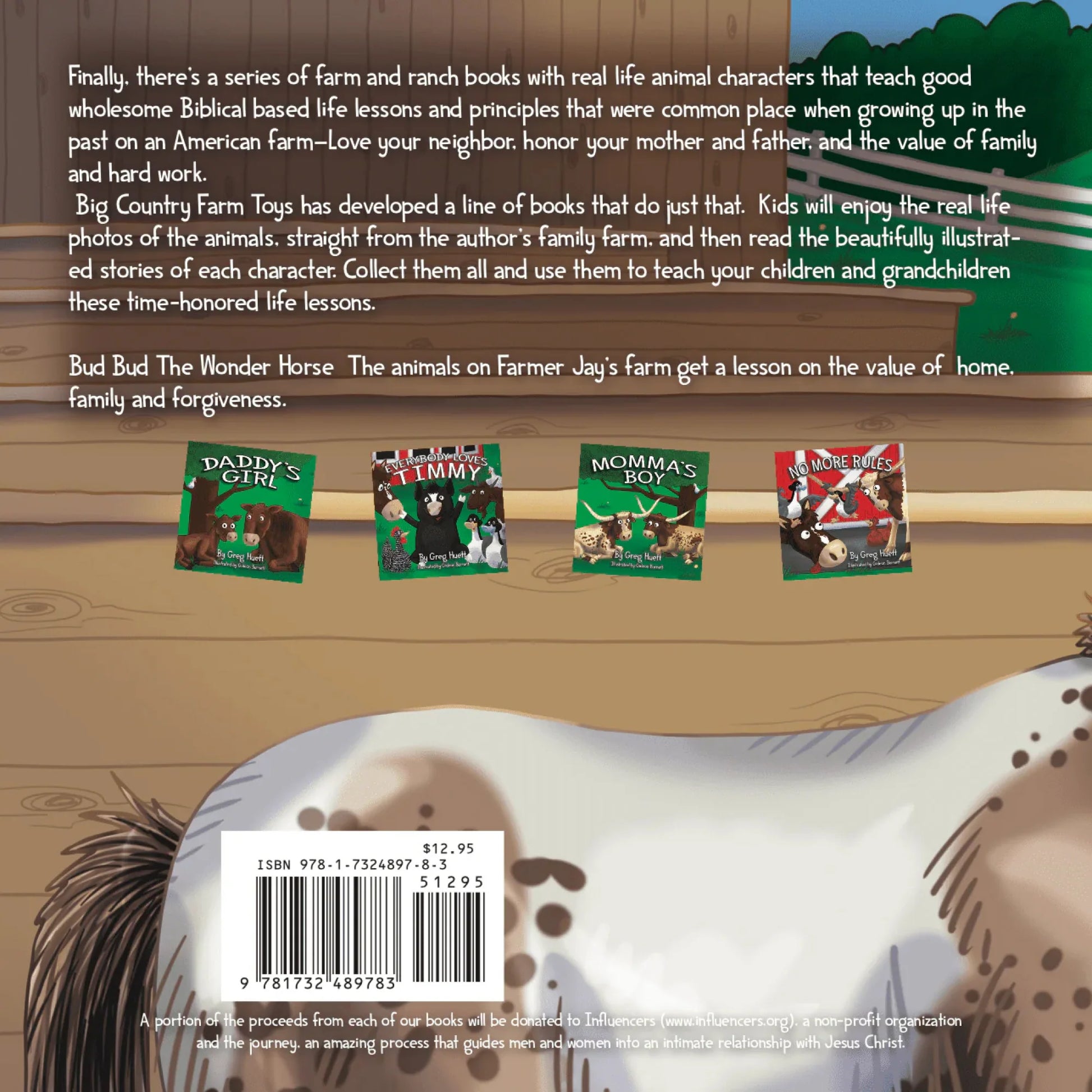 Finally, there’s a series of farm and ranch books with real-life animal characters that teach good wholesome Biblical based life lessons and principles that were commonplace when growing up in the past on an American farm—Love your neighbor, honor your mother and father, and the value of family and hard work.