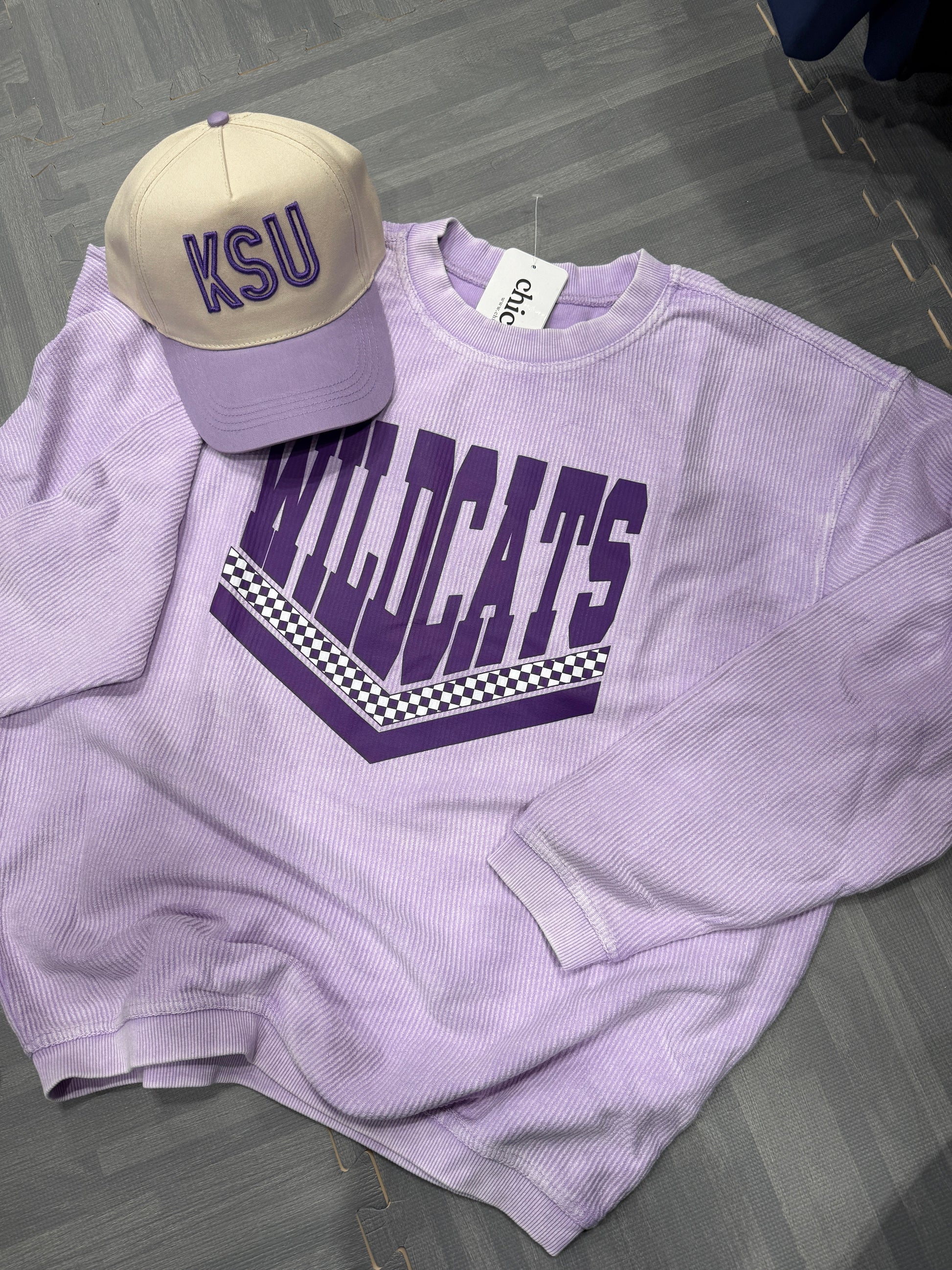 Lavender Elevated Wildcats Ribbed Crewneck