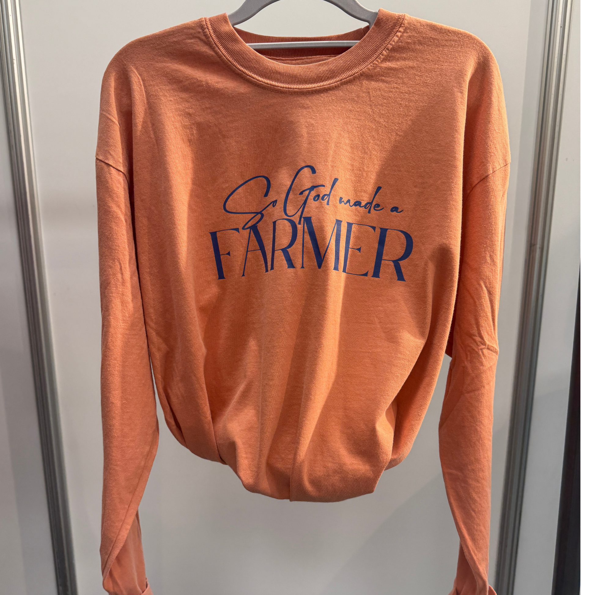 So God Made a Farmer – because someone's gotta celebrate the hardworking folks who keep our communities fed and thriving! This design is perfect for anyone who loves supporting local agriculture and wants to spread the word about the backbone of our food system. Whether you're a farmer yourself, a farm-to-table enthusiast, or just someone who appreciates good honest work, this piece lets your values shine with a playful twist. Wear it proudly and start conversations about why local farming matters!